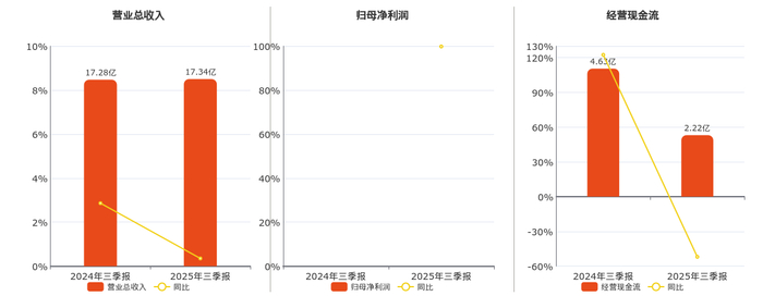 公司营业总收入为17.34亿元。归母净利润为1.63亿元。经营活动现金净流入为2.22亿元,较去年同报告期经营活动现金净流入减少2.40亿元,同比较去年同期下降51.97%。