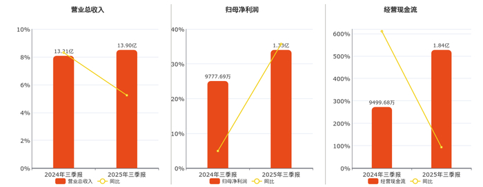 公司营业总收入为13.90亿元,在已披露的同业公司中排名第9。归母净利润为1.33亿元。经营活动现金净流入为1.84亿元。