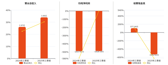 公司营业总收入为3.86亿元,在已披露的同业公司中排名第140。归母净利润为-2928.18万元,在已披露的同业公司中排名第175。经营活动现金净流入为-3042.63万元,在已披露的同业公司中排名第151,较去年同报告期经营活动现金净流入减少3620.53万元,同比较去年同期下降626.50%。