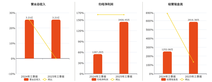 公司营业总收入为3.21亿元,在已披露的同业公司中排名第142,较去年同报告期营业总收入减少8.55万元,同比较去年同期下降0.03%。归母净利润为3406.45万元,在已披露的同业公司中排名第100。经营活动现金净流入为2916.38万元,在已披露的同业公司中排名第101。