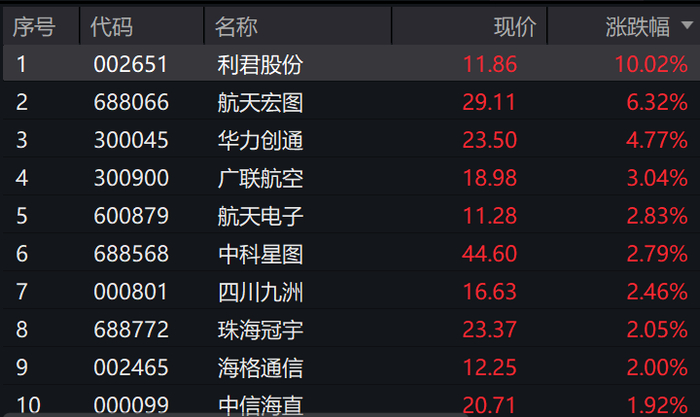 截至12月1日13:51,同类规模最大的通用航空ETF(159378)涨超1%,冲击3连涨。成分股利君股份(002651)涨停,航天宏图(688066),华力创通(300045),广联航空(300900)等个股跟涨。
