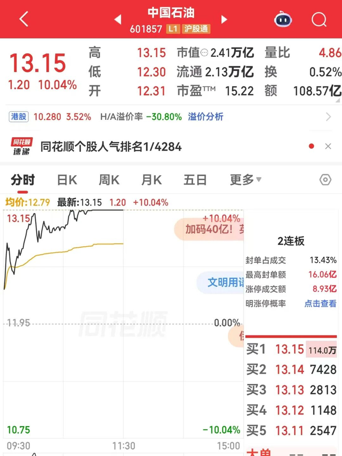 中国石油涨停