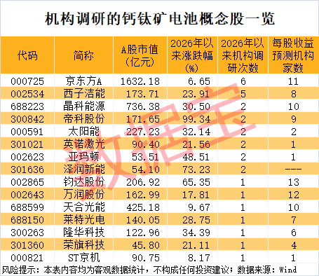 机构调研15只钙钛矿电池概念股