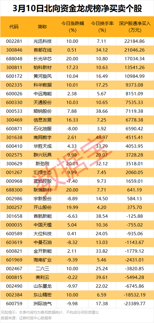 北向资金净卖出11股,洲际油气净卖出金额居首,为2.34亿元;东山精密、山东墨龙、美利云等净卖出金额均超5000万元。