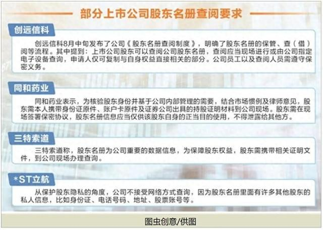 如同和药业表示,为核验股东身份并基于公司内部管理的需要,结合市场惯例及律师意见,股东需本人携带身份证原件、账户卡原件及证券公司出具的持股证明材料到公司现场。股东需在现场签署保密协议,股东名册信息应当仅供该股东自身的正当目的使用,不得泄露给其他方。在公司董事会办公室工作人员现场核实股东身份并确认保密协议已签署完毕后将提供相关信息。三特索道称,股东名册为公司重要的数据信息,为保障股东的权益,股东需携带相关证明文件,到公司现场办理查询。