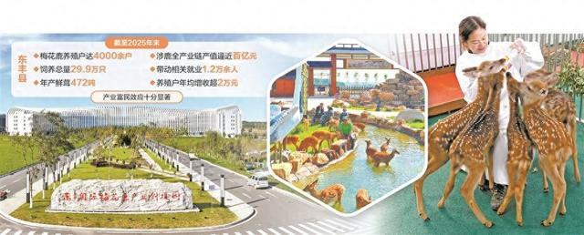 证券时报记者实地探访“中国梅花鹿之乡”东丰县。孙宪超/供图近日,证券时报记者深入东丰县实地走访发现,当地梅花鹿产业已突破单一种养的传统,实现一二三产业深度融合的多元化发展格局。作为吉林省梅花鹿产业“两核战略”的重要一极,东丰县涉鹿全产业链产值已逼近百亿元,成为带动当地农民增收致富、推动区域经济发展的引擎。