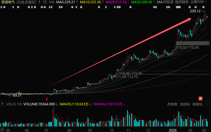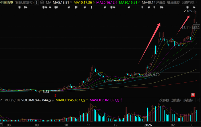 至于中国西电,这家以输配电产业为主业的央企,2026年以来股价已经暴涨120%,并在3月5日、6日、9日、10日连续创出历史新高。