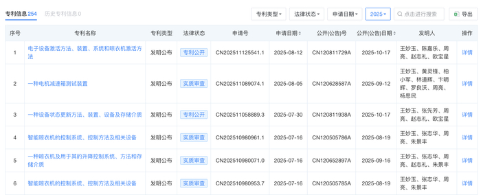 值得关注的是,这些专利并非零散的技术点,而是围绕'智能晾晒+智能锁'双核心业务,形成以用户场景为轴心的专利集群。