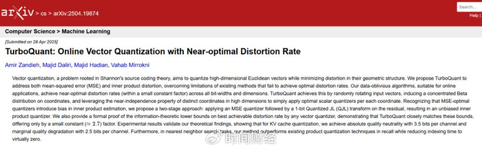 值得注意的是,压缩KV cache、进行长上下文优化也并不是全新的技术思路。早在2025年4月,谷歌就曾公开发表过TurboQuant的相关论文。