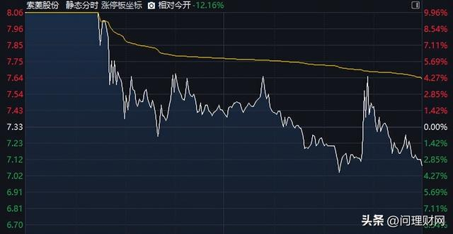1月7日,索菱股份(002766)一字涨停开盘,10时13分左右涨停板打开,随即维持震荡,至收盘股价报收7.08元,跌幅3.41%。