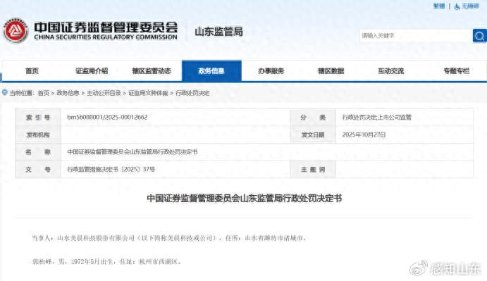 11月4日,证监会山东监管局在官网公示的行政监管措施决定书(〔2025〕37号),山东美晨科技股份有限公司(以下简称“美晨科技”)以及相关责任人因为违法违规被合计罚款290万元。