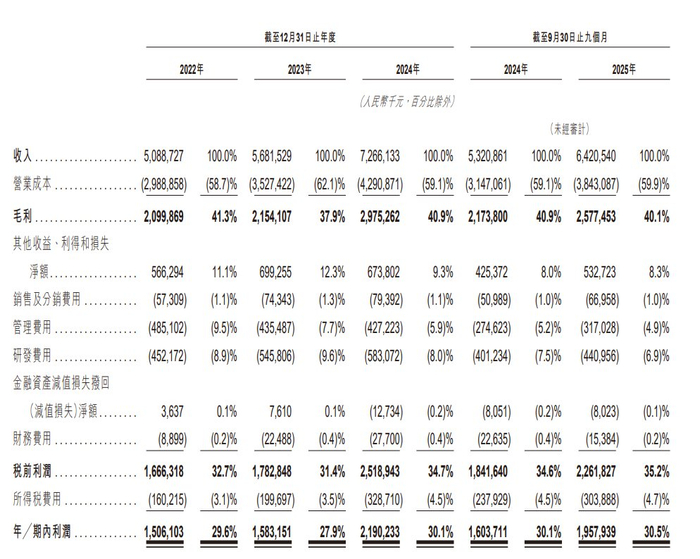 于2022年度、2023年度、2024年度、2024年及2025年截至9月30日止九个月,三环集团实现利润分别约为15.06亿元、15.83亿元、21.90亿元、16.04亿元、19.58亿元人民币。