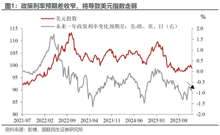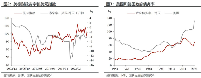第二是欧洲尤其是德国财政发力带来欧元的走强。虽然明年美国财政也可能相对积极,但外汇市场定价逻辑往往更聚焦“政策边际变化的强弱差异”:一方面,德国财政政策的调整具备更强的转向标志性意义;另一方面,美国政府债务负担显著高于德国,若后续财政赤字规模持续扩大,或对其货币信用预期形成一定程度的负面拖累。