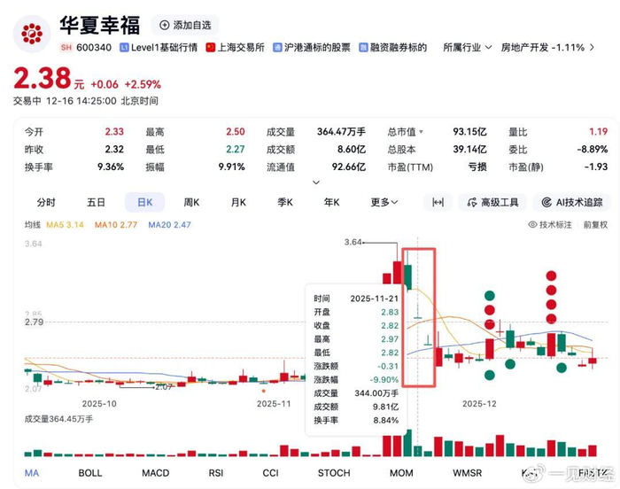 11月19日盘中,华夏幸福股价创出了3.64元的近期高点。在王葳发布公开声明次日,华夏幸福股价连续三日大跌。