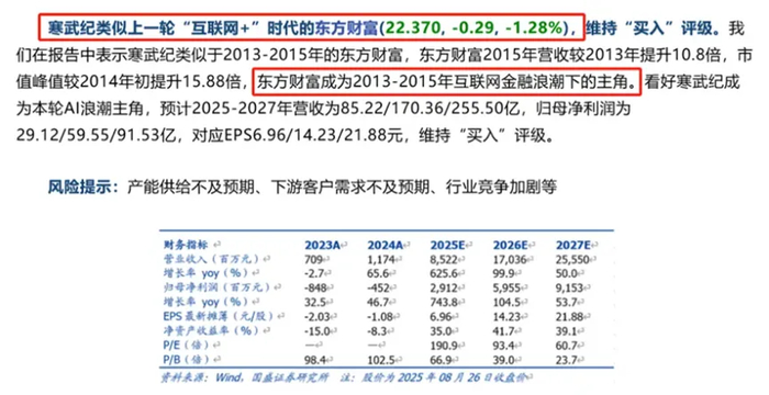 昨天力场君以寒武纪(688256.SH)这只股票为例,就着国盛证券在研报中将其类比为东方财富(300059.SZ)在10多年前那一波股价大涨的评价,和小伙伴们做了个交流分享。