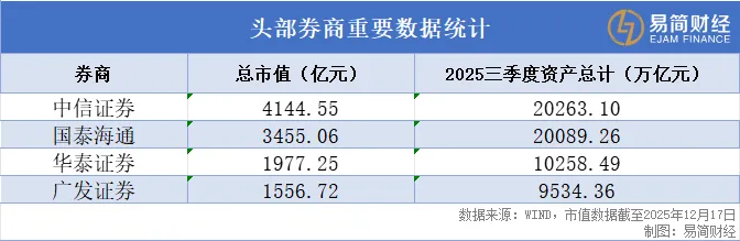 截至今年9月,资产规模超过万亿的券商仅有中信证券、国泰海通、华泰证券。