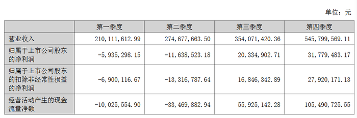 2023年,中鲁B实现归属于上市公司股东的净利润为3959.93万元,其中一二季度分别为-300.48万元、-719.66万元,三四季度分别为3931.14万元、1048.93万元;2024年,中鲁B实现归属于上市公司股东的净利润为3454.06万元,其中,一二季度分别为-593.53万元、-1163.85万元,三四季度分别为2033.49万元、3177.95万元。