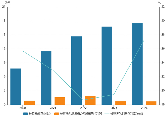 2023年至2024年,受电信市场价格竞争加剧、行业周期波动影响,长芯博创业绩出现下滑,2024年归母净利润降至7207万元,较2022年峰值下滑 64%。