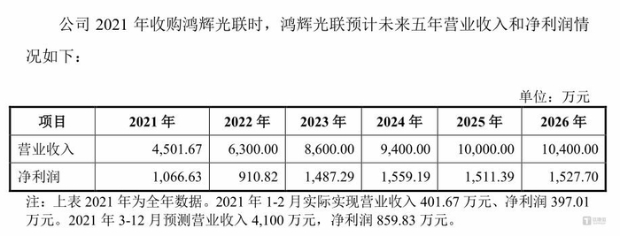 界面新闻还注意到,虽然已经成为鸿辉光通的盈利支柱,标的和其收购时的业绩承诺仍有较大差距。