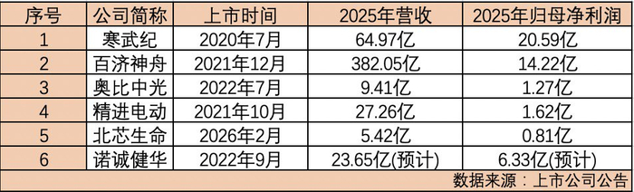 据界面新闻统计,寒武纪(688256.SH)、百济神州(688235.SH)、诺诚健华(688428.SH)、奥比中光(688322.SH)、精进电动(688280.SH)、北芯生命(688712.SH)等六家企业实现扭亏为盈。行业方面,上述企业覆盖了人工智能、生物医药、新能源、高端医疗器械等战略新兴领域,预计将在年报正式披露后,摘除特殊标识,退出科创成长层。