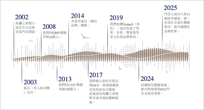海澜之家的目标消费人群从曾经的“中年男性”向“家庭全人群”扩展,同时通过打造黑鲸、OVV、英氏等子品牌,将海澜之家从“男装单一品牌”转向“多品牌集团”,并进一步铺开文娱体育口合作、强化线上内容营销。