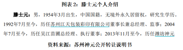 而据苏州神元公开转让说明书,1992年7月至2014年12月,滕士元历任江天有限董事长兼总经理、监事。