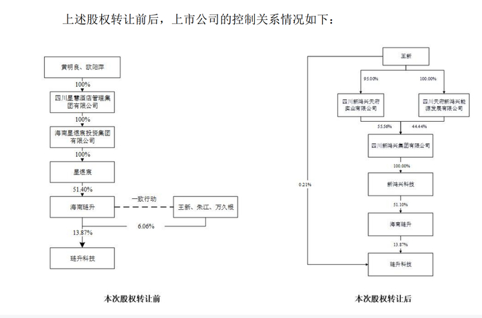 至此,上述股权转让与定增完成后,海南琏升完成股权结构调整,琏升科技实控人将变更为现任董事长王新。
