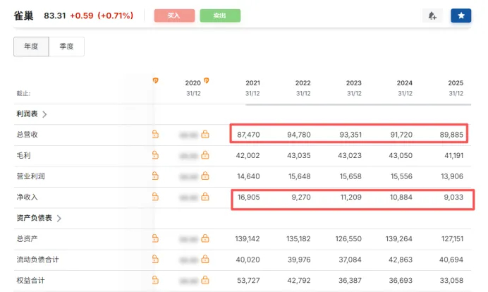 近日,国际食品巨头雀巢集团发布2025年财报。雀巢集团2025年总营收为898.85亿瑞士法郎,同比下降2%,净收入为90.33亿瑞士法郎,同比下降17.01%。