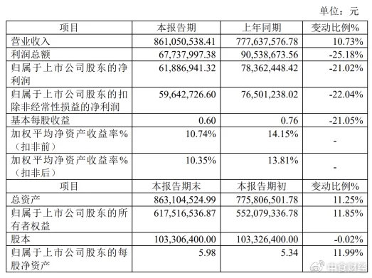 财报显示,2025财年,路斯股份实现营业收入8.61亿元,同比增长10.73%;归属于上市公司股东的净利润(归母净利润)仅为6188.69万元,同比下降21.02%;扣除非经常性损益后的净利润约5964万元,同比下降22.04%。