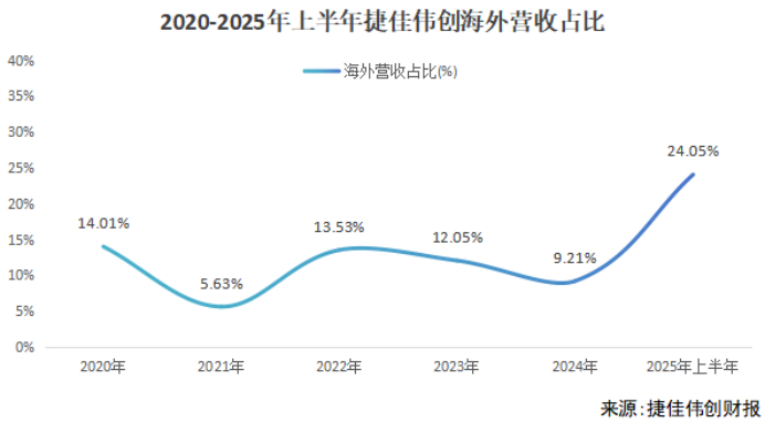 2020年至2025年上半年,公司海外营收占比从14%增至24.05%,高于迈为股份(19.57%)、晶盛机电(11.22%)等同行。