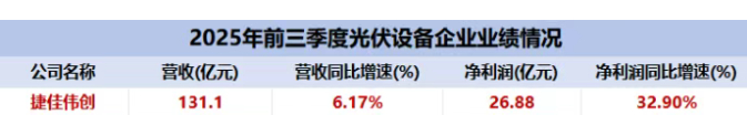 曾经被视为光伏避风港的设备行业也出现业绩分化。2025年前三季度,东方日升、钧达股份净利润分别亏损9.33亿、4.19亿,迈为股份、晶盛机电虽未亏损,但业绩均出现下滑。