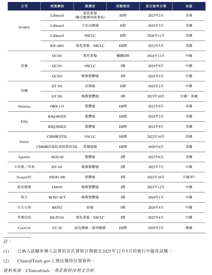 根据弗若斯特沙利文(Frost & Sullivan)报告,公司的核心产品GC101是全球首款无需高强度清淋化疗、无需IL-2给药的肿瘤浸润淋巴细胞(TIL)疗法,有望成为中国首个获批上市的TIL疗法。