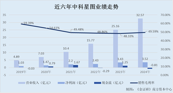 可见,2019年以来,中科星图的经营性净现金流曾四度告负,且销售毛利率呈下滑趋势。