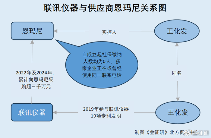 简言之,此番上市,恩玛尼系联讯仪器累计交易超三千万元的供应商,恩玛尼成立于2020年,且自2020年成立起恩玛尼社保缴纳人数均为0人。另外,恩玛尼的实控人为王化发。2019年,同名“王化发”现身联讯仪器19项专利申请的发明人“名单”,是否为同一人或待核查。