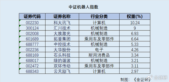 成分股既包含语言交互巨头科大讯飞、工控领域龙头汇川技术、流程工业自动化控制领军者中控技术等系统集成商,也有减速器供应商绿的谐波、深耕精密齿轮制造的双环传动等核心零部件企业。