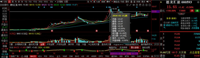 资本市场上,这场“科技换血”早已激起期待。自2025年10月底正式确认筹化控制权变更以后,德龙汇能的股价开始加速上行,2026年1月15日,触及高点18.95元/股(前复权,下同),相较10月期间的10元/股以下,涨幅高达90%;相较2025年初的5元/股上下,涨幅更是高达280%上下。