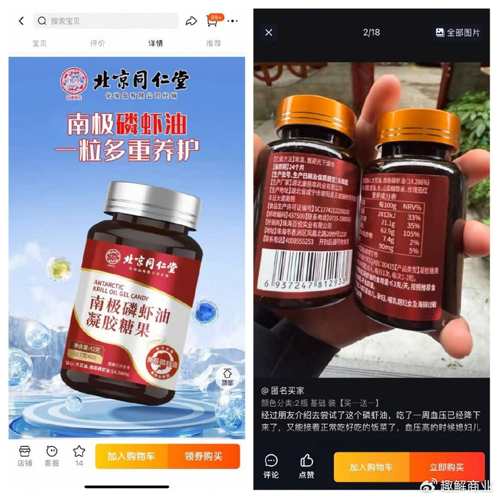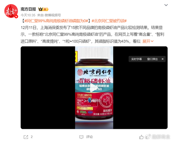 北京同仁堂(四川)药业相关工作人员称,已经和上海消保委进行了沟通,进一步核实相关的检测结果。这位工作人员表示,从今年6月份开始,“北京同仁堂99%高纯南极磷虾油”已经停产,市面上销售的大多是分销商的存货。