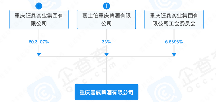双方的合作要回溯到1999年。这一年,民营企业家尹兴明创办的重庆钰鑫实业集团有限责任公司(下称“重庆钰鑫”,前身为“金星啤酒”)与改制后的重庆啤酒厂(下称“重啤集团”)共同创立重庆嘉威,其中重啤集团以“山城”啤酒商标使用权出资,占股33%;重庆钰鑫以全部啤酒资产出资,占股60.31%;重庆钰鑫工会以货币出资,占股6.69%。截至目前,重庆嘉威的股东结构未发生变化。也就是说,重庆嘉威是重庆啤酒参股的子公司。据“天眼查”信息显示,重庆嘉威的实控人为尹兴明的儿子尹顺新。