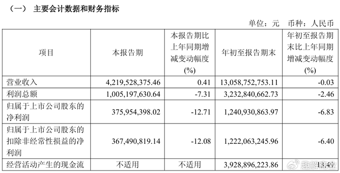2025年三季报显示,重庆啤酒前三季度实现营业收入130.59亿元,同比下降0.03%;归母净利润为12.41亿元,同比下降6.83%。第三季度实现营业收入42.20亿元,同比增长0.41%;归母净利润为3.76亿元,同比下降12.71%。