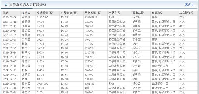 据东方财富网显示,该公司董秘、财务总监邹勇坚在2025年6月份以14.23元每股行权增持了18万股,按照目前的股价亏损了22万多;职工董事丁学宝去年2月行权5000股,也亏损了6000多元;副总经理杨静去年2月份行权31500股,截至目前已亏损了3.8万元。