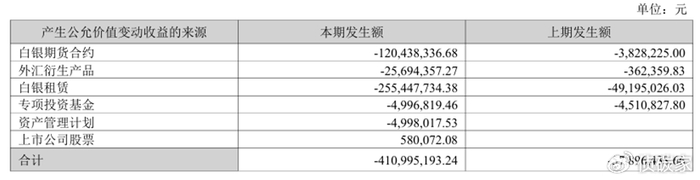 除了已经发生的投资损失,帝科股份持有的白银期货合约、外汇衍生产品、白银租赁业务、专项投资基金期末公允价值变动产生的公允价值变动损益更是高达-4.11亿元。其中白银期货合约和白银租赁攻击损失3.76亿元,成为最大损失来源。