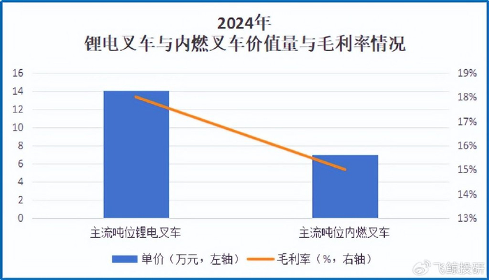 根据下图,锂电叉车单价约为内燃叉车的两倍,而且毛利率高出内燃叉车约3.5个百分点。