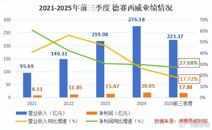 2025年前三季度,德赛西威营业收入和净利润分别又达到了223.37亿、17.88亿,继续保持了增长势头。