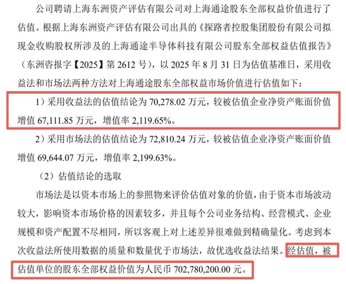 另一家标的上海通途,主要从事IP技术授权、芯片设计研发,产品覆盖手机AP芯片、AMOLED驱动芯片、AR/VR芯片、监控芯片、TV芯片、车载ADAS芯片等多个领域。其评估价值约为7.0278亿元,增值率高达2119.65%。