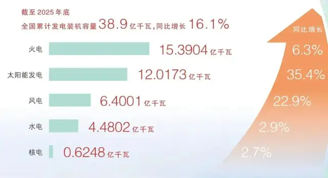 国家能源局数据显示,截至2025年底,全国可再生能源装机总量达23.4亿千瓦,同比增长24%,约占全国电力总装机的60%。这让电网的消纳压力与日俱增。而储能也随之在光伏等行业崛起。