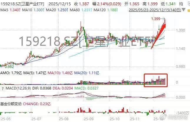 近期卫星产业无疑是全市场的焦点之一,数据显示,截至12月15日,首支卫星产业ETF(159218)逆市走强。截至收盘,该ETF上涨2.14%,成功实现 “五连阳” ,盘中价格创下历史新高。市场交投情绪高涨,该ETF已连续8个交易日单日成交额突破1亿元,年初以来累计获得资金净流入超5.3亿元,展现出强大的资金吸引力。