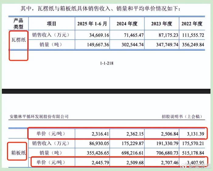 从核心产品单价来看,或是林平发展业绩下滑主因。报告期内,瓦楞纸单价从2022年的3131.39元/吨降至2025年上半年的2316.41元/吨,累计降幅达26%;箱板纸单价从3407.95元/吨降至2445.79元/吨,降幅28%。公司解释称单价下跌受行业周期、供需失衡及原材料价格波动影响,但市场却质疑其产品的市场竞争力或出现了严重不足的情况。