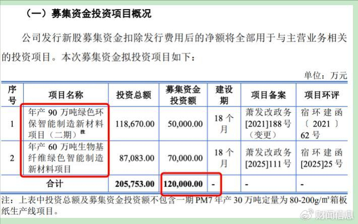 “年产60万吨生物基纤维绿色智能制造新材料项目”总投资额包括建筑工程费、设备购置费、安装工程费、工程建设其他费用、预备费、铺底流动资金等,预估总投资为 87,083.00 万元。项目建成达产后,可实现年产30万吨定量为90-160g/㎡瓦楞纸和年产30万吨定量为 80-200g/㎡箱板纸的生产能力,