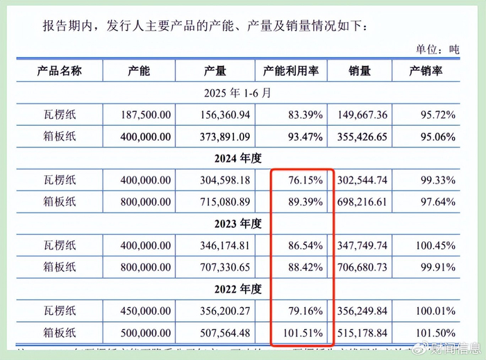 而在过去三年瓦楞纸产能利用率平均只有80%,箱板纸产能利用率三年平均为93%,林平发展此次IPO居然要募资高达12亿元用于扩大产能。其中,林平发展在2024年瓦楞纸产能利用率仅为76.15%,且销量同比下降13%。箱板纸的产能利用率也仅为89.39%,销量同比下滑1.2%。