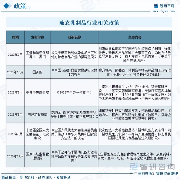 注:本文节选出自智研咨询发布的《2026年中国液态乳制品行业政策、产业链、市场规模、竞争梯队、代表企业经营现状及发展趋势分析:竞争越发激烈,消费总量不断上升,行业前景广阔[图]》行业分析文章,如需获取行业文章全部内容,可进入智研咨询官网搜索查看。